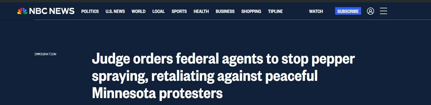 The media coverage of the Immigration operations in Minnesota has recently focused heavily on a court order against ICE instructing them to “stop” the use of pepper spray and chemical sprays against peaceful protestors.