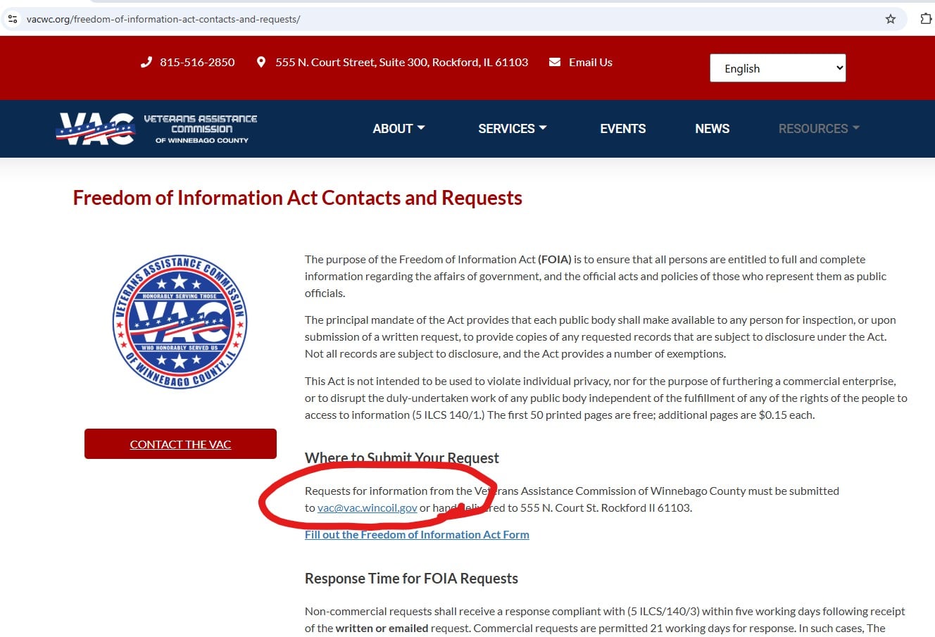 The Veterans Assistance Commission of Winnebago County (“VACWC”) has been ignoring Freedom of Information Act (“FOIA”) requests for public records.